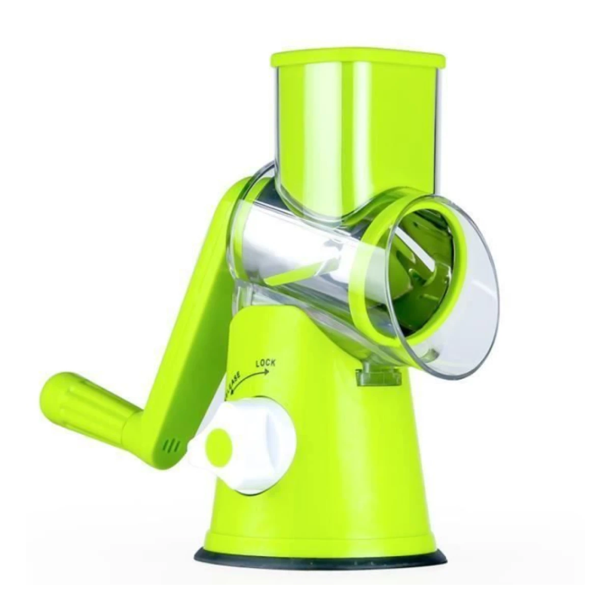 * Cuenta con Tres Ralladores Intercambiables para Rallado Fino, Rallado Grueso y Rebanador. * Base con Sopapa de agarre. Se adhiere firme a la mesa (para lograr el efecto es necesario mantener la Base apoyada a la mesa al momento de encastrar la parte superior).